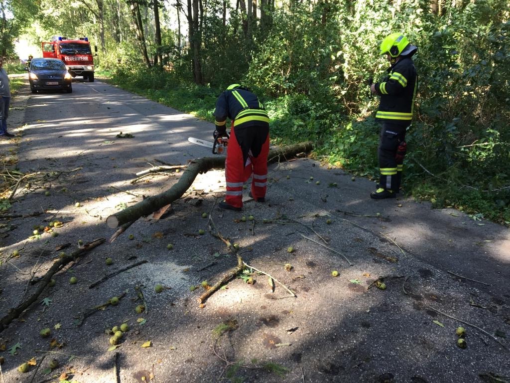Ein Baum hielt den Sturmböen nicht mehr stand und krachte in weiterer Folge auf die Straße. Nach einer kurzen Lagebeurteilung durch den Einsatzleiter wurde entschieden, dass der Baum sofort entfernt werden kann, da sich der Wind zu dieser Zeit schon größtenteils gelegt hatte. Mittels Motorkettensäge wurde der Baum zerkleinert und abgetragen.