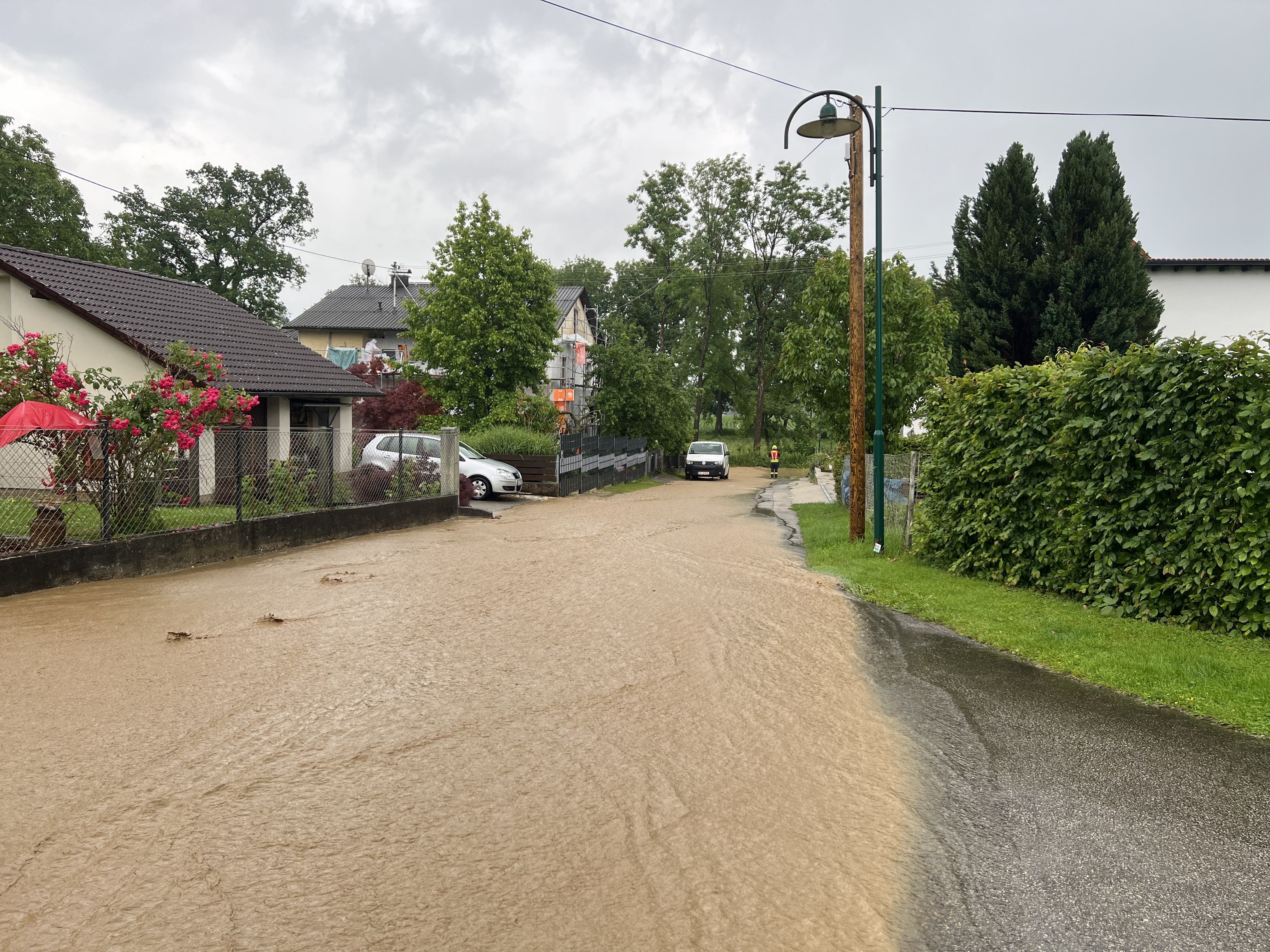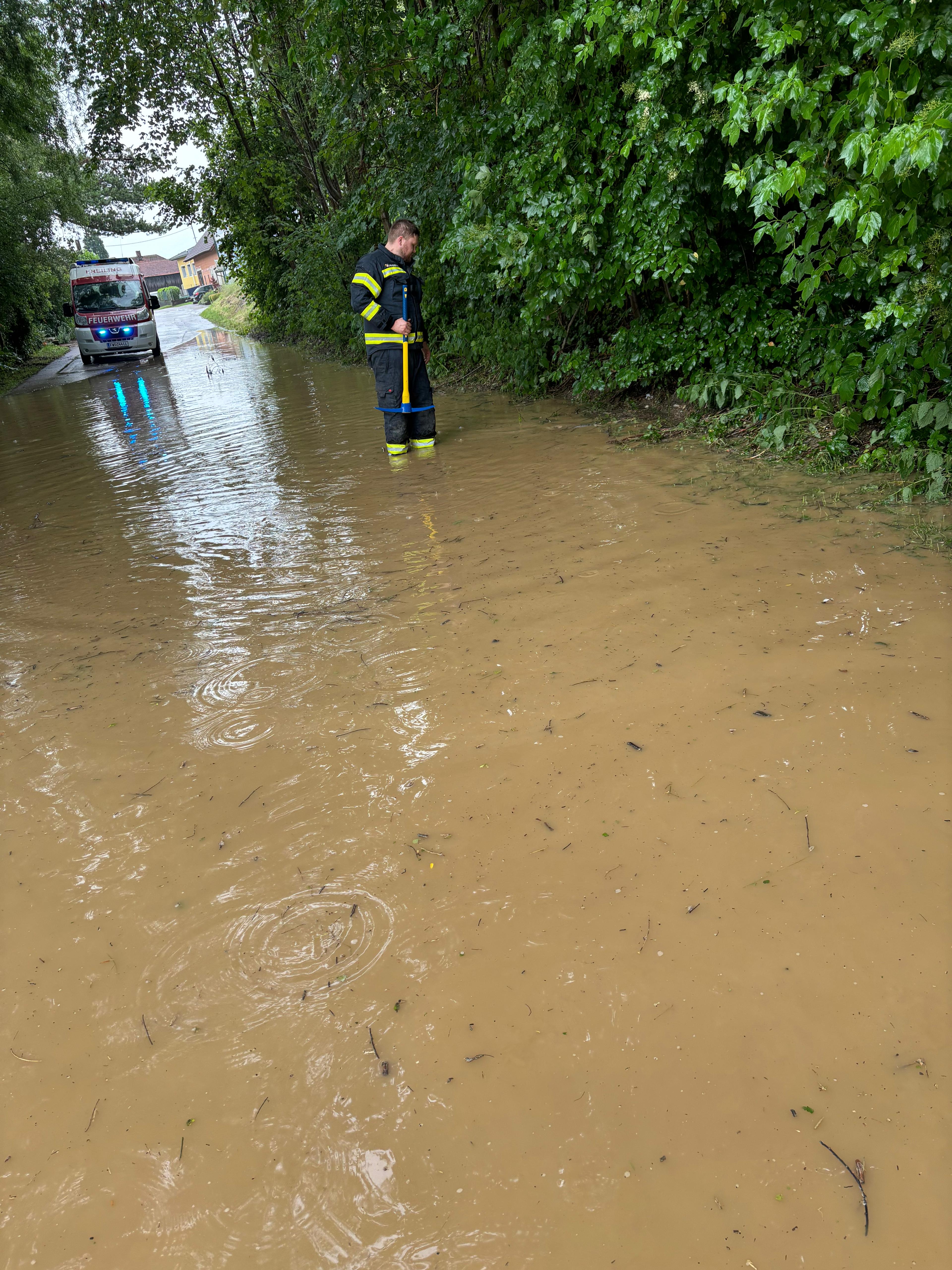 Ein intensiver Regenfall am 03. Juni 2024 löste mehrere Einsätze in Oftering aus.
